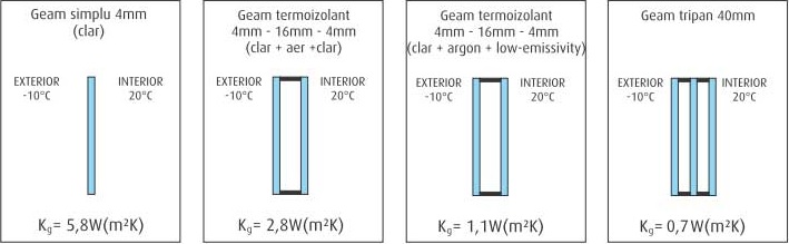 Geamul dublu este format din două foi de sticlă separate de un spațiu umplut cu aer sau gaz inert (argon).
